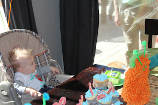 Lucas' smash cake cracked me up. It was supposed to be a one-eyed monster with his name written under it. Instead it was just two regular eyeballs with long eyelashes. Too funny. Definitely not what I was going for! It was oddly fitting though since he is known for his big eyes - it's still always the first thing people comment on when they meet him.